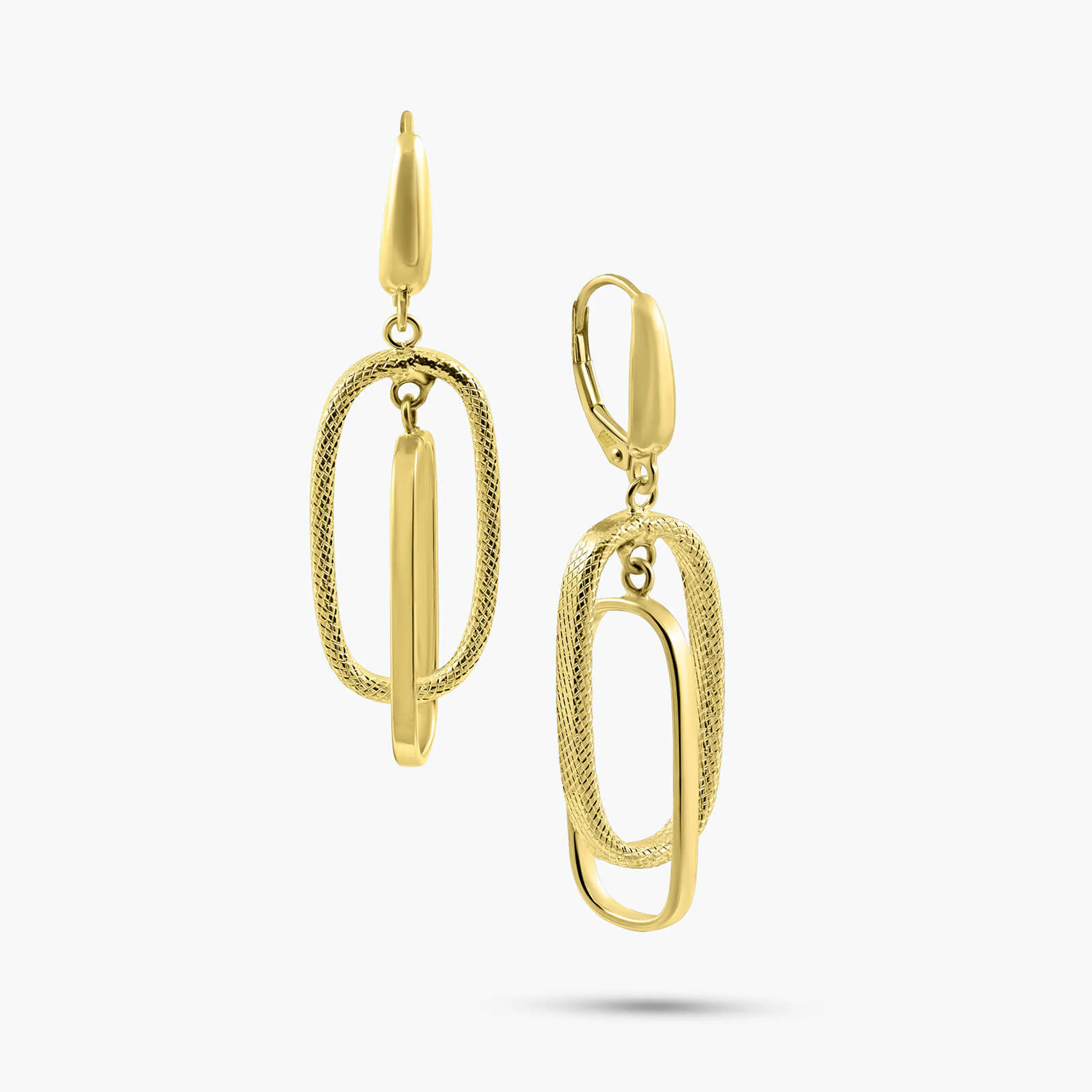 עגילי זהב 14K בעיצוב כפול ותלוי, המשלב שתי חוליות אליפטיות במראה הרמוני ומעודן.