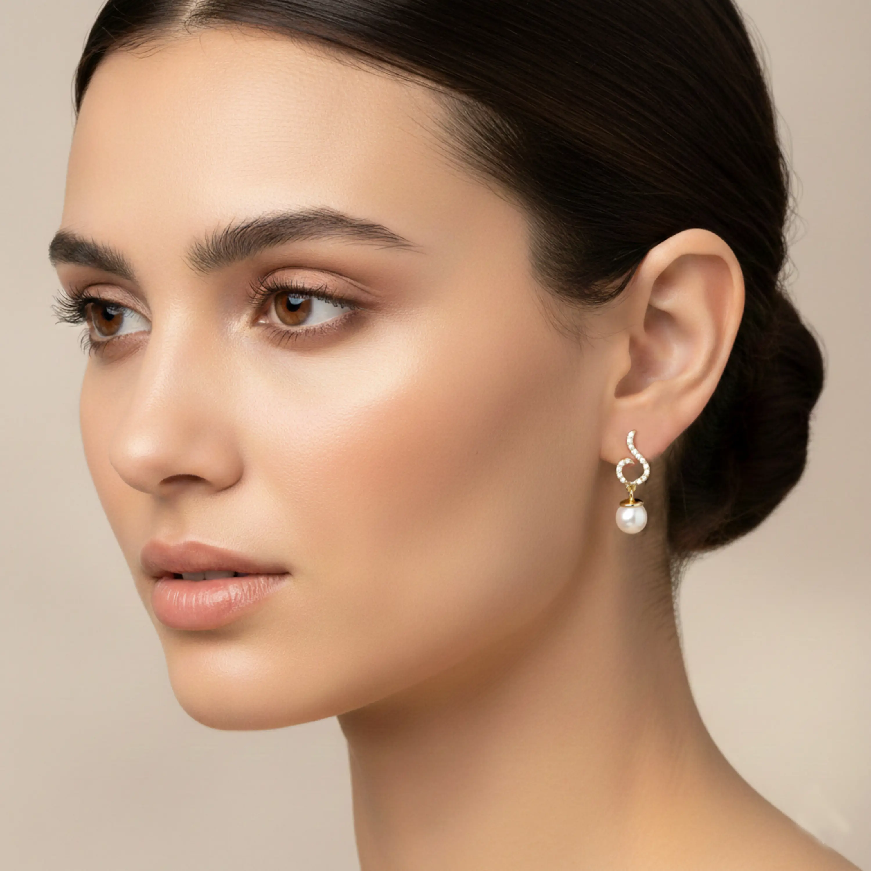 עגילי זהב 14K בעיצוב אלגנטי ומתפתל, המשלב שיבוץ יהלומים לאורך הקו העליון ופנינה עגולה ותלויה המוסיפה רכות וזוהר טבעי. הקימור העדין יוצר תנועה מחמיאה על האוזן, בעוד הפנינה משלימה את המראה בנוכחות קלאסית ועל זמנית. שילוב של ברק יהלומים עם עומק ליטוש הפנינה, לתוצאה יוקרתית ומדויקת.