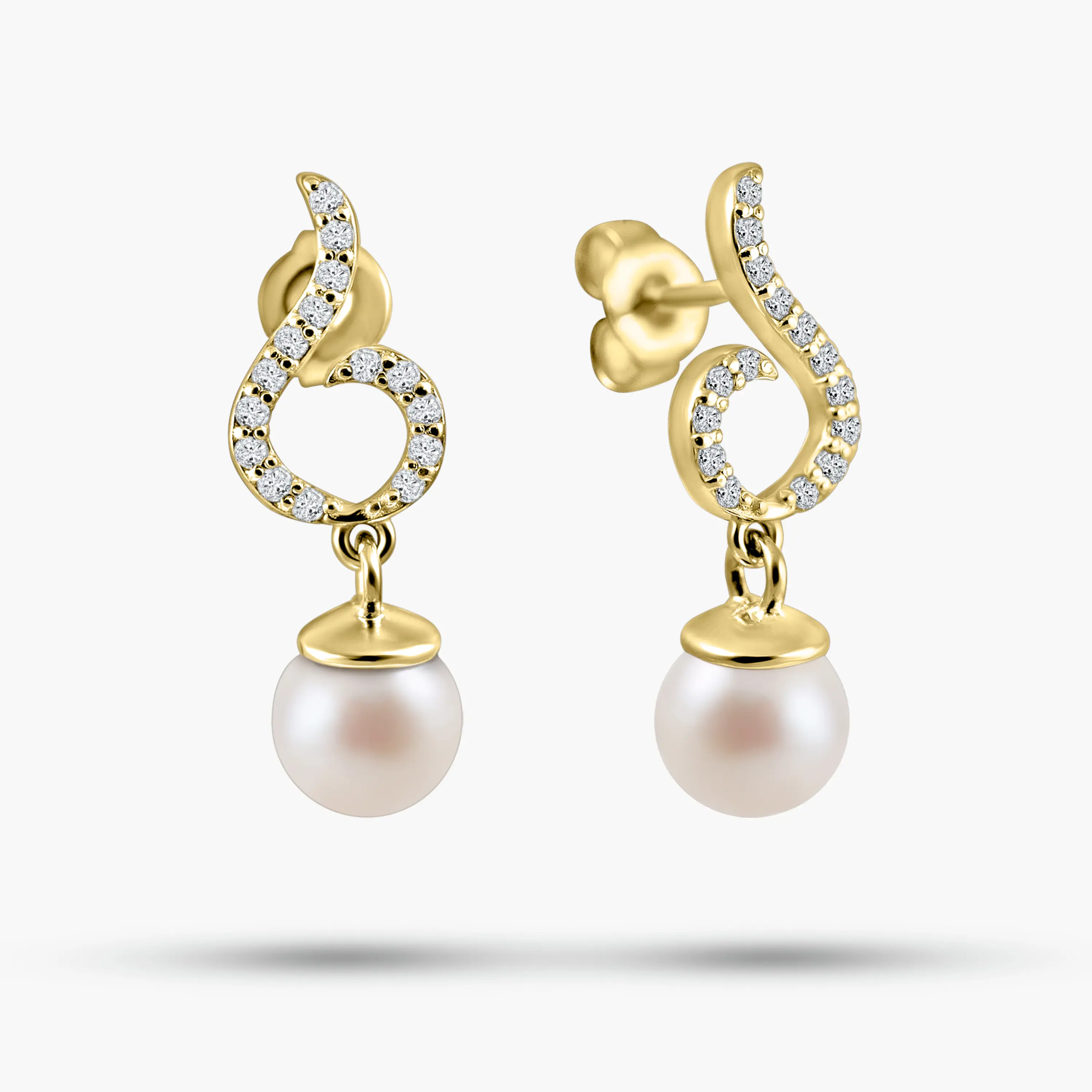 עגילי זהב 14K בשיבוץ פנינה ויהלומים