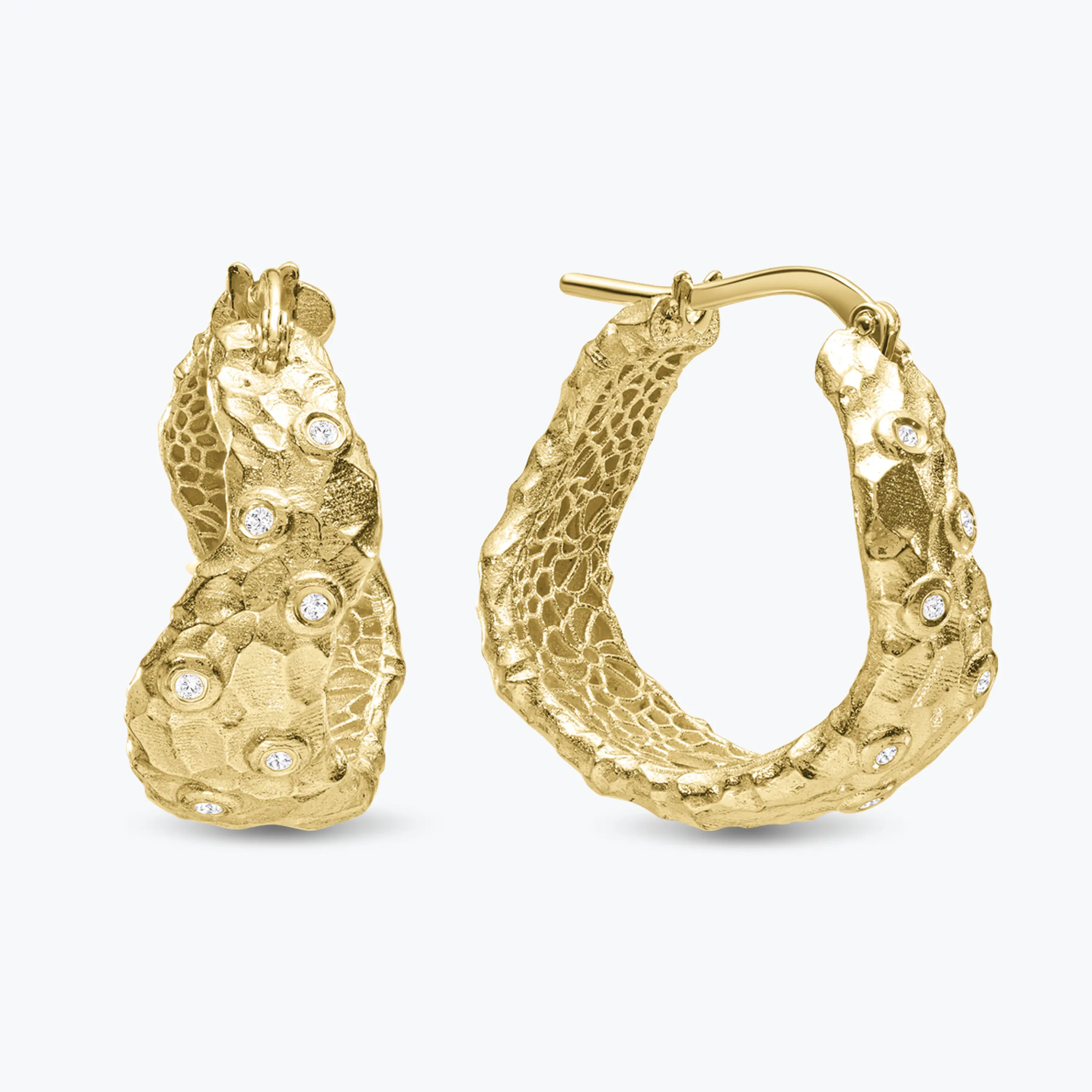 עגילי זהב 14K מחוספסים בשיבוץ יהלומים