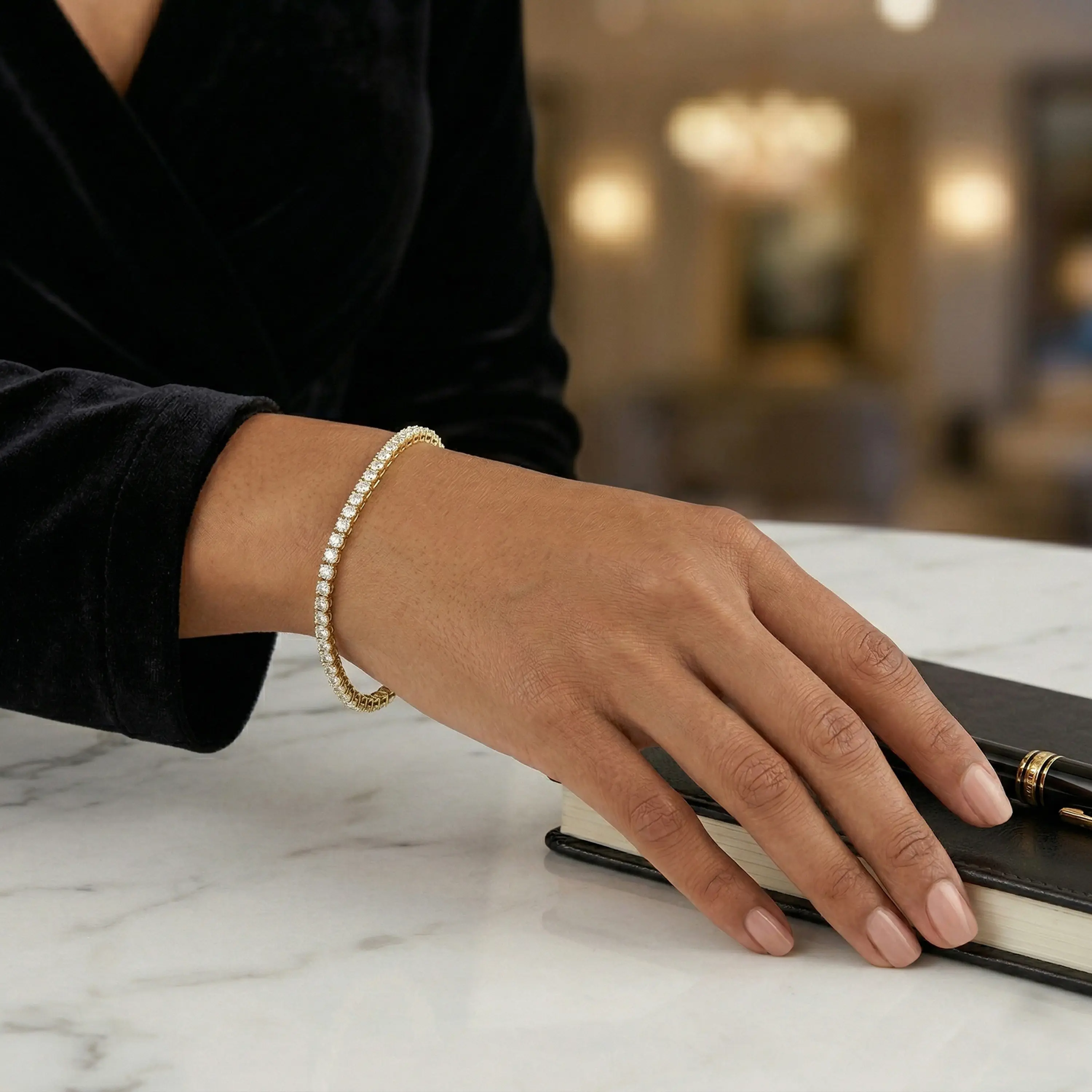 צמיד טניס מזהב 14K בעיצוב קלאסי המשלב שורת יהלומי מעבדה המשובצים ברצף ליצירת ברק אחיד ומרשים לכל אורכו. השיבוץ המדויק מדגיש כל אבן ומעניק לתכשיט מראה יוקרתי ועל זמני. המבנה הגמיש יושב בנוחות על היד ויוצר מראה אלגנטי המתאים לענידה יומיומית וגם להשלמת הופעה חגיגית. תכשיט על זמני שנשאר רלוונטי בכל עונה.