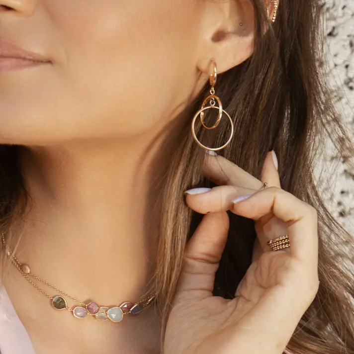 עגילים 3 חישוקים מחוברים 4.5 ס"מ אורך