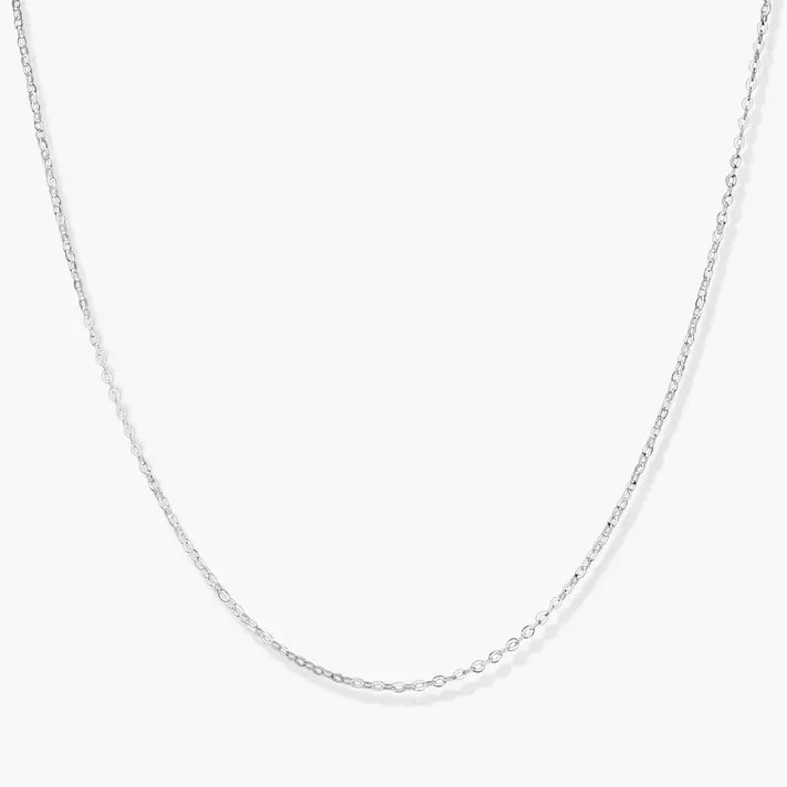 שרשרת זהב לבן 14K הבנויה מחוליות . אורך השרשרת 44 ס"מ ורוחב כל חוליה 1.4 מ"מ.