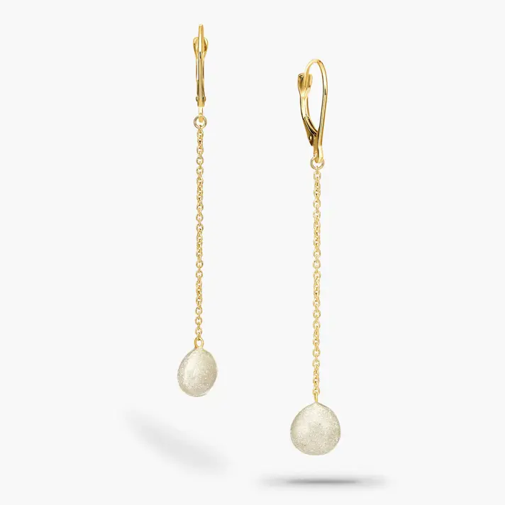 עגילי זהב באורך 6 ס"מ עם טיפות זהב מצופות קריסטלים