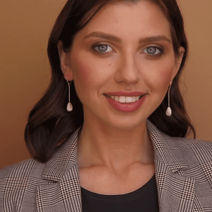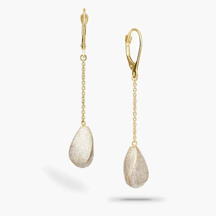 עגילי זהב 14K באורך 5 ס"מ ובסופן אבן זהב מצופה בקריסטלים נוצצים. גודל אבני הזהב 1.2*0.8 ס"מ.
