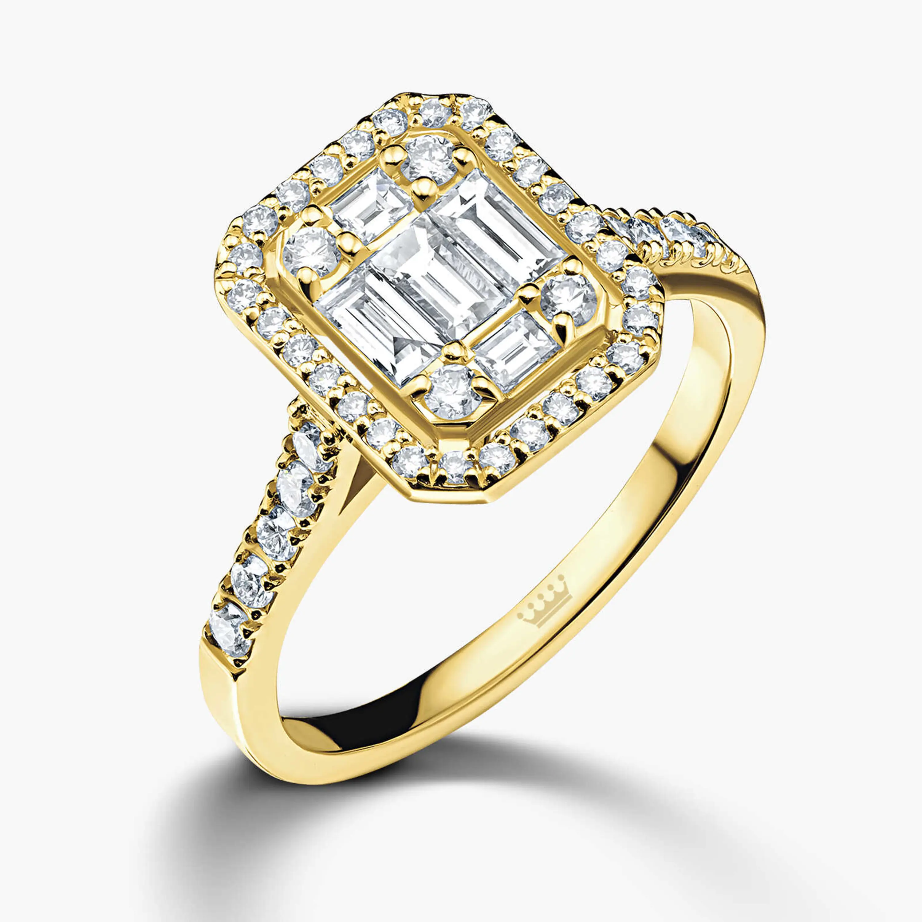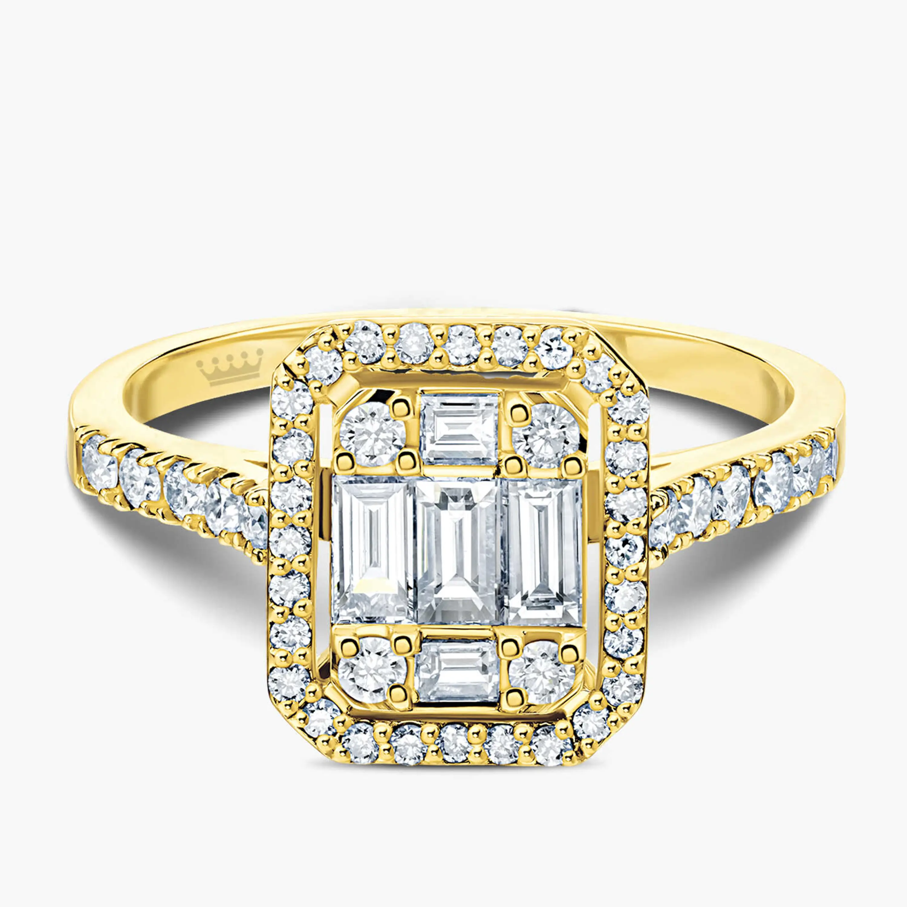 טבעת זהב משובצת ביהלומי באגט ועגולים