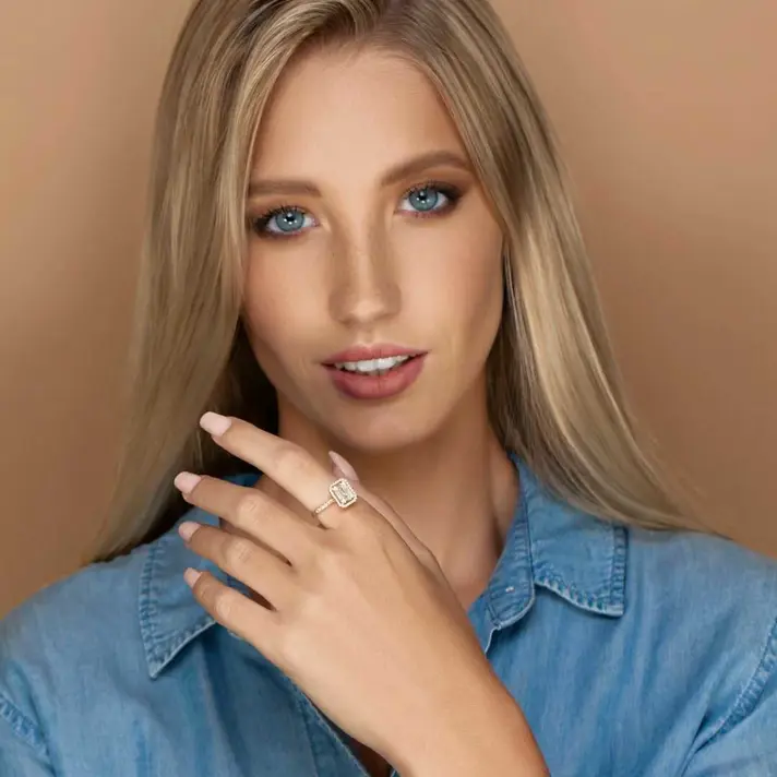 טבעת זהב 14K בעלת ראש מרובע משובצת ביהולמים טבעיים ונוצצים בחיתוך באגט יוקרתי ועגול. סה"כ משובצים בטבעת 47 יהלומים. לפירוט נתוני האבנים יש ללחוץ על נתוני אבני החן.