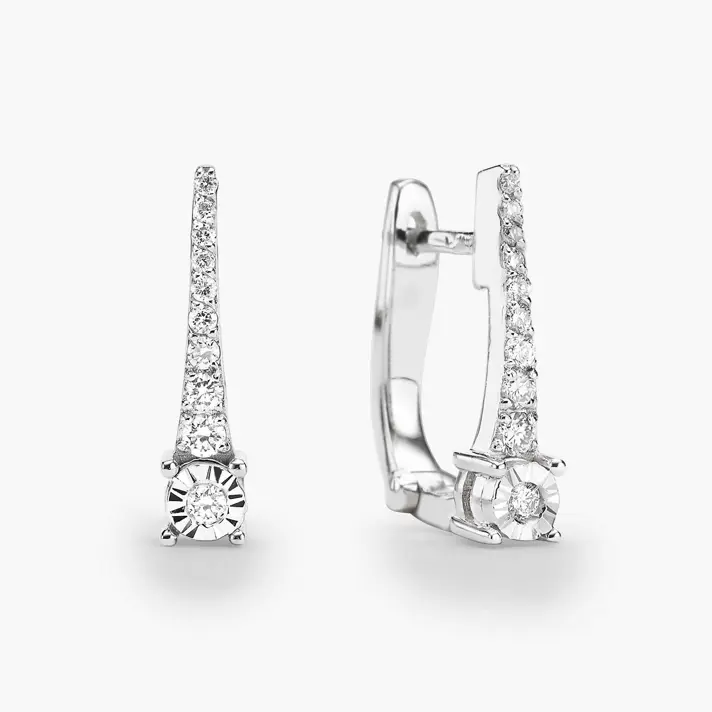עגילי זהב לבן משובצים יהלומים