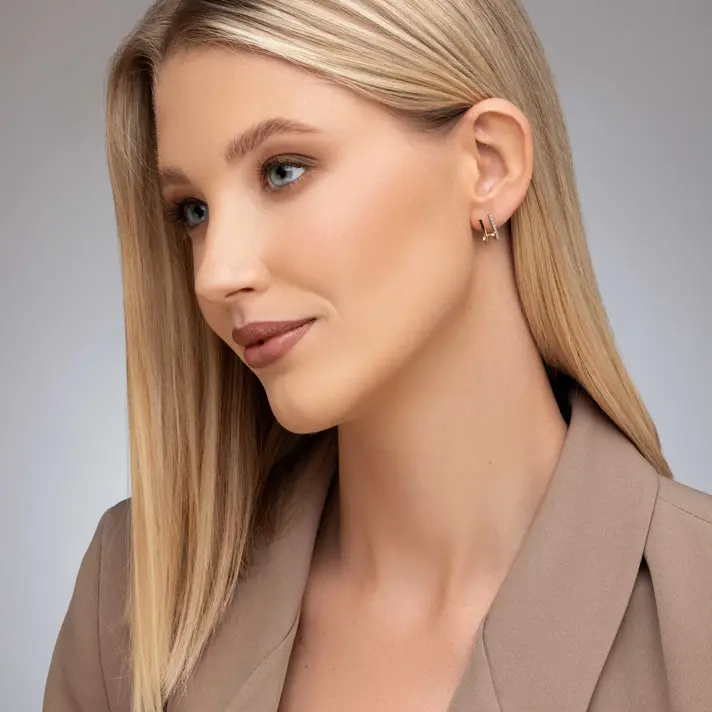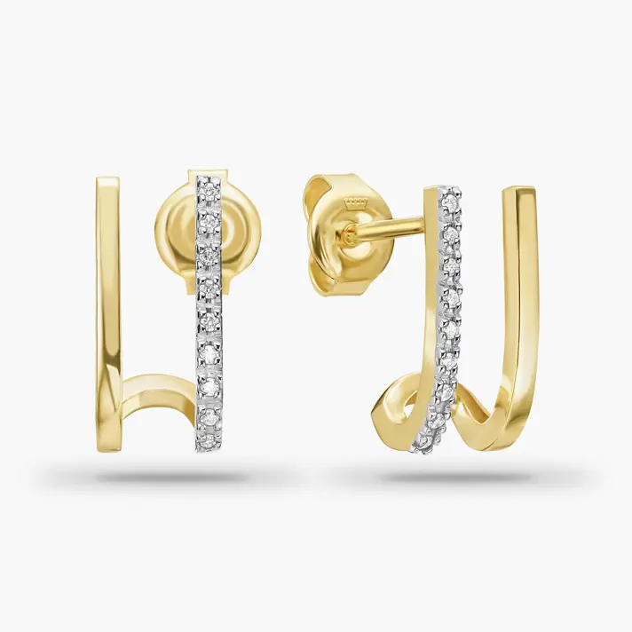 עגילי זהב כפולים בשיבוץ יהלומים