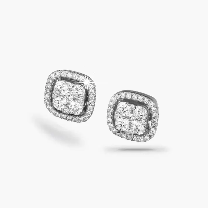 עגילי זהב לבן 14K צמודים לאוזן משובצים ב 35 יהלומים נוצצים בכל עגיל. גובה ורוחב העגיל 1.1 ס"מ