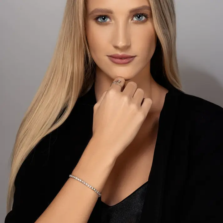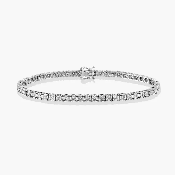 צמיד טניס זהב משובץ יהלומים במשקל של מעל ל 2 קראט, באורך 19.5 ס"מ ובעובי 3.7 מ"מ. פריט חובה לכל חובבת תכשיטים.