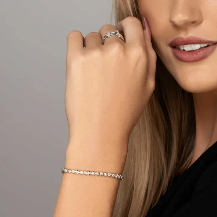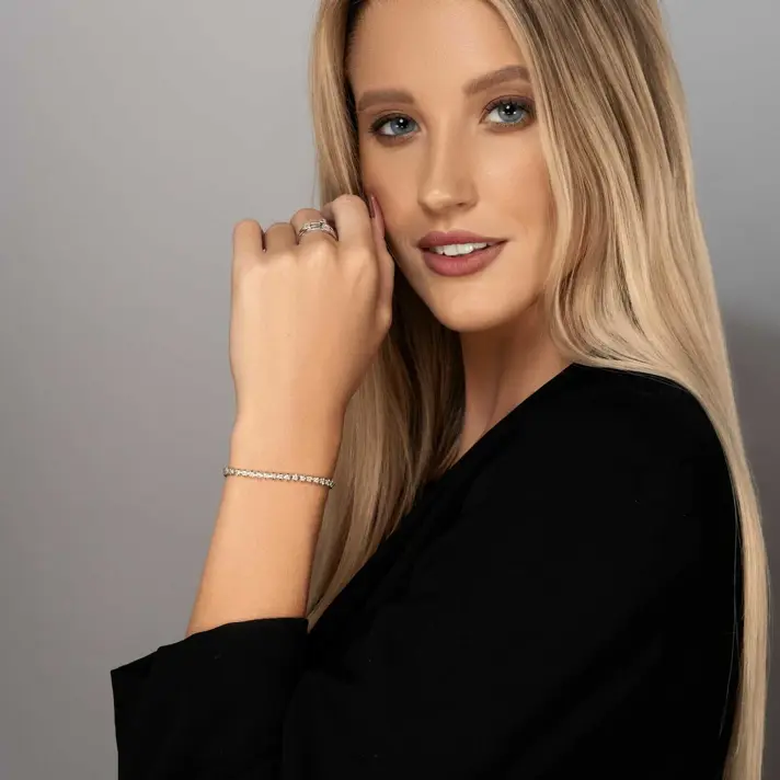 צמיד טניס זהב משובץ יהלומים במשקל של מעל ל 2.5 קראט, באורך 19.5 ס"מ. פריט חובה לכל חובבת תכשיטים.