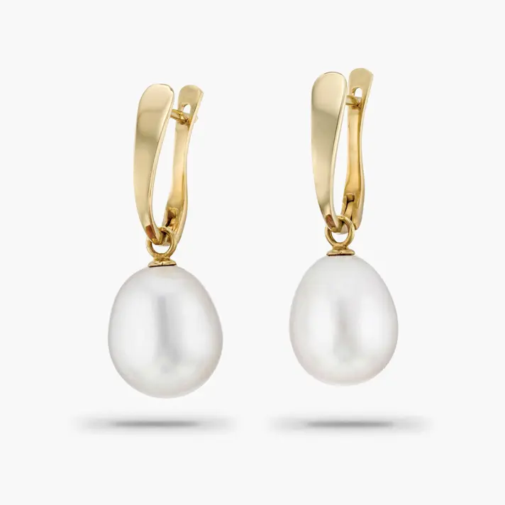עגילי פנינים  14 קראט משובצים פנינים הגדלים במים מתוקים .