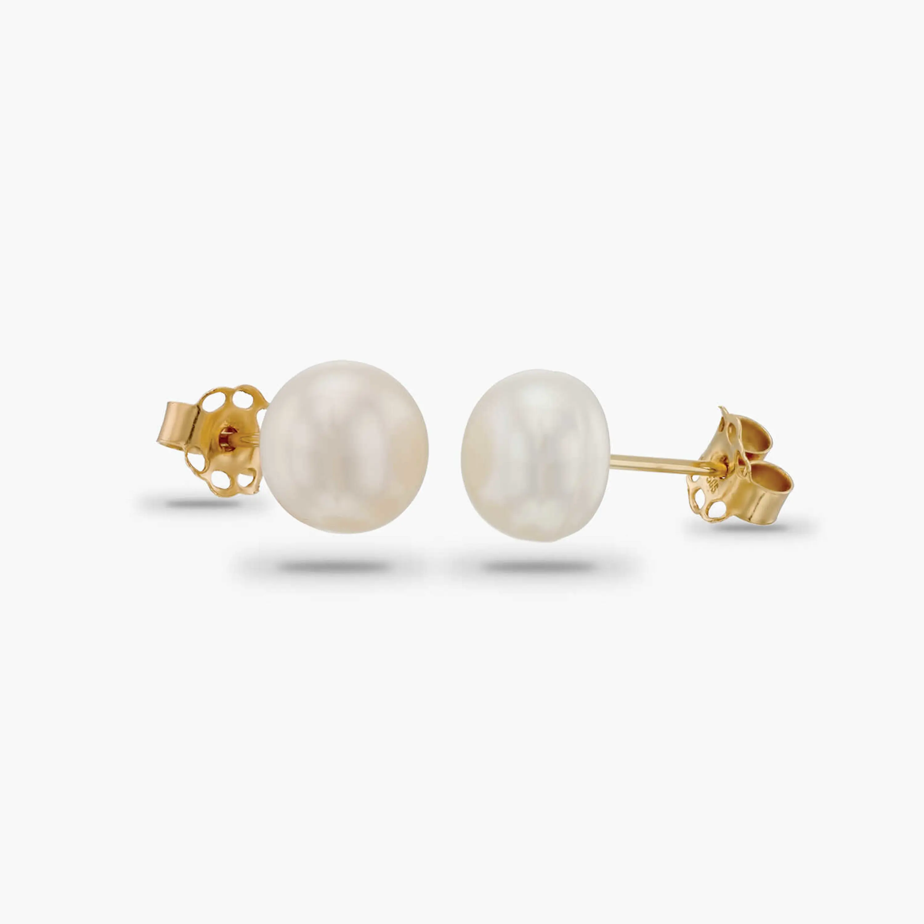 עגילי זהב 14K צמודים לאוזן ומשובצים פנינים אמיתיות שגדלו במים מתוקים בקוטר 9-9.5 מ"מ .