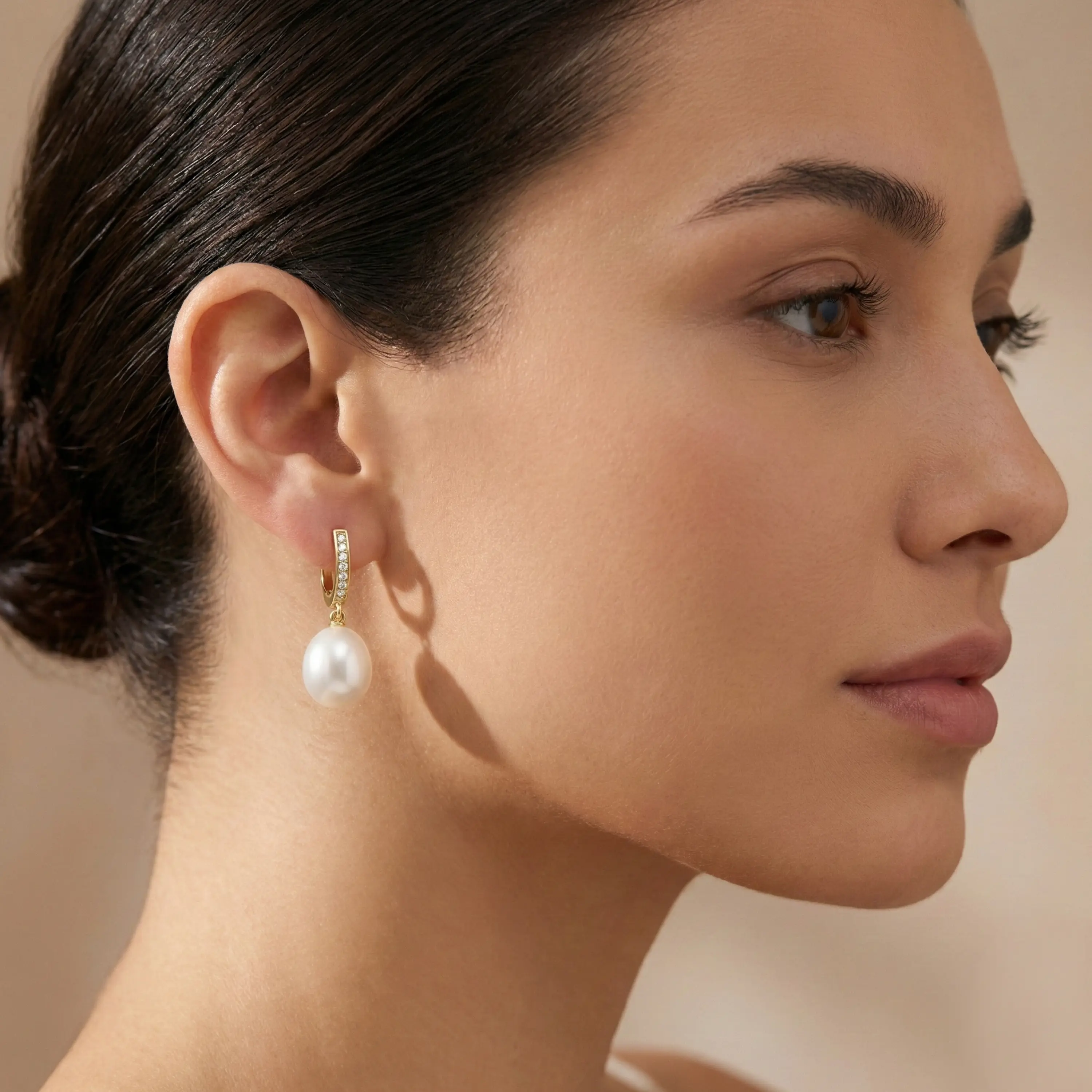 עגילי פנינים ויהלומים 0.18 קראט