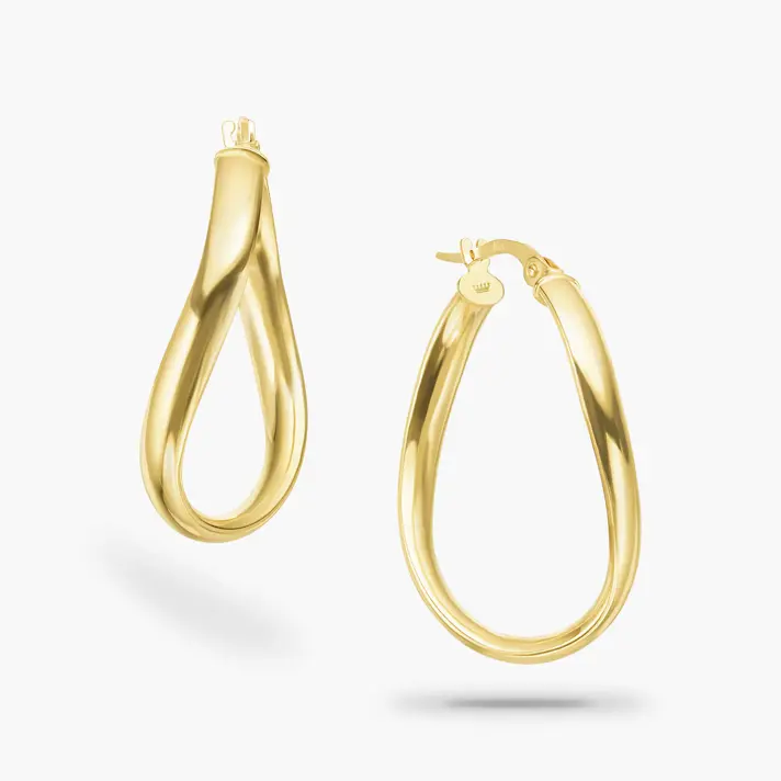 עגילי חישוק אלומה קלאסיים אבל עם טוויסט, מקולקציית DAY AND NIGHT - העגילים שתמיד באופנה, ערב, יומיום. כל יום, כל היום!, העגילים עשוים 14K זהב צהוב.