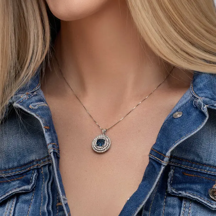 התליון שתמיד רצית! תליון BLUE CENTER עשוי זהב לבן 14K משובץ בלו לונדון ו- 75 יהלומים טבעיים ונוצצים.