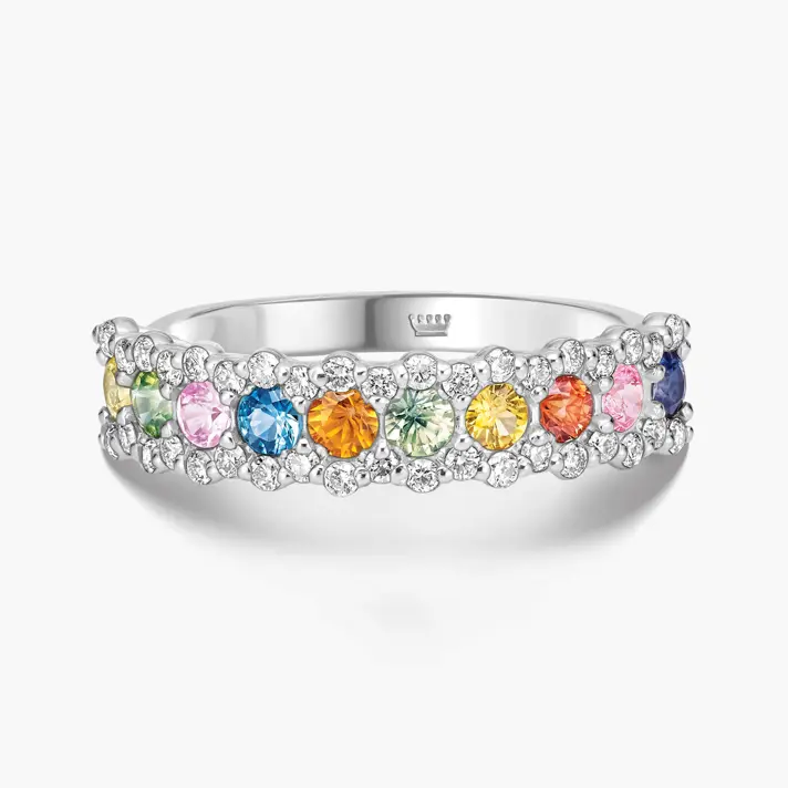 טבעת RAINBOW WHITE משובצת יהלומים וספירים