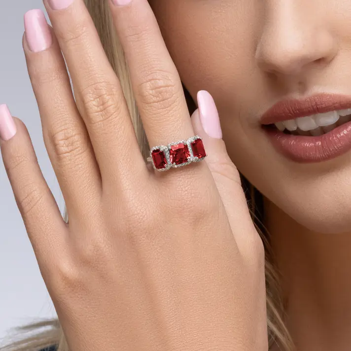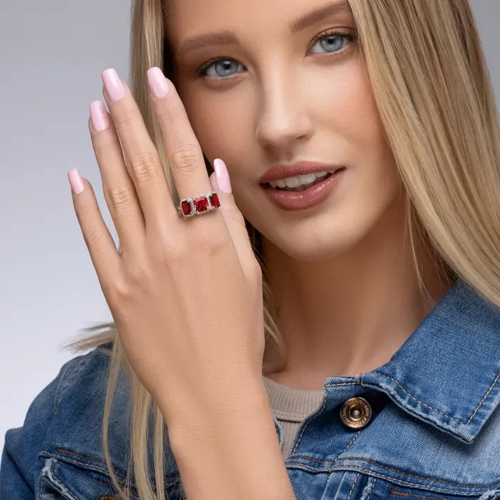 טבעת אליזבט מקולקציית ROYAL QUEENS המלכותית. הטבעת עשויה 14K זהב צהוב ומשובצת באבני רובי גלס ו- 71 יהלומים טבעיים ונוצצים. ולמה בחרנו לטבעת את השם אליזבט? ובכן, המלכה אליזבט השנייה היא השגרירה המפורסמת ביותר של תכשיטי הרובי. בבעלותה ישנם עגילים זהב המשובצים אבני רובי במשקל כולל של מעל 100 קראט!!