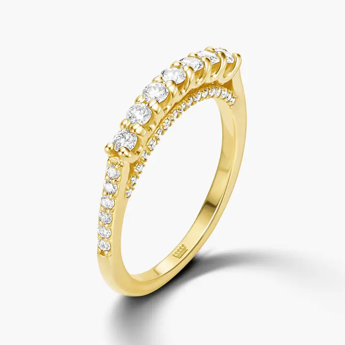 המתנה המושלמת ליום הנישואין! טבעת מרלן עשויה 14K זהב צהוב ומשובצת ב53 יהלומים טבעיים ונוצצים בשיבוץ בזוויות שיגרמו לטבעת לנצנץ במקסימום!