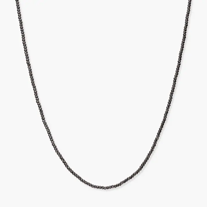שרשרת זהב לבן 14K באורך 42 ס"מ + 3 ס"מ תוספת לארכת שרשרת. הבנויה מחרוזי זהב בעיבוד לייזר מנצנץ . קוטר החרוזים 1.2 מ"מ.