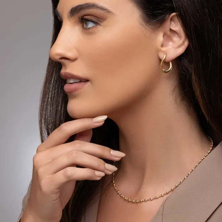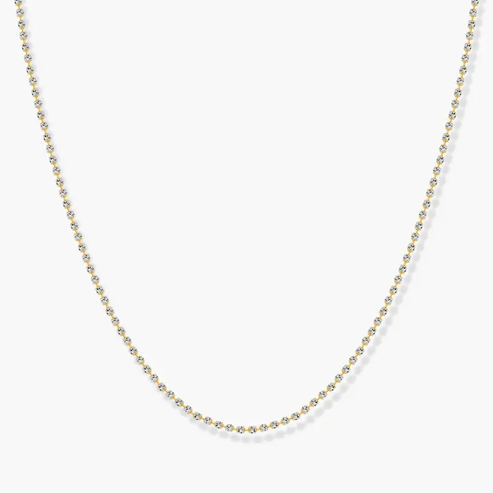 שרשרת לייזה, עשויה זהב 14K צהוב ולבן במראה כדורי לייזר לנצנוץ מקסימלי. אורך השרשרת 43 ס"מ.