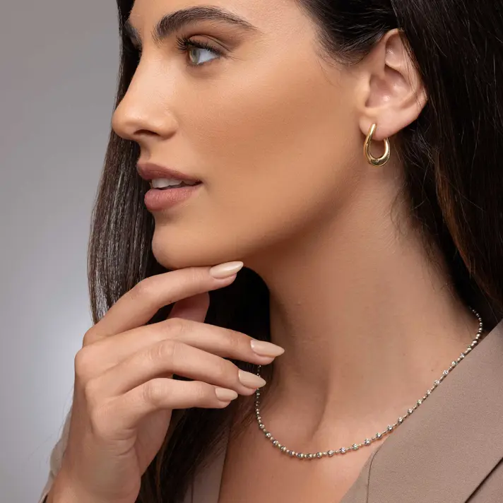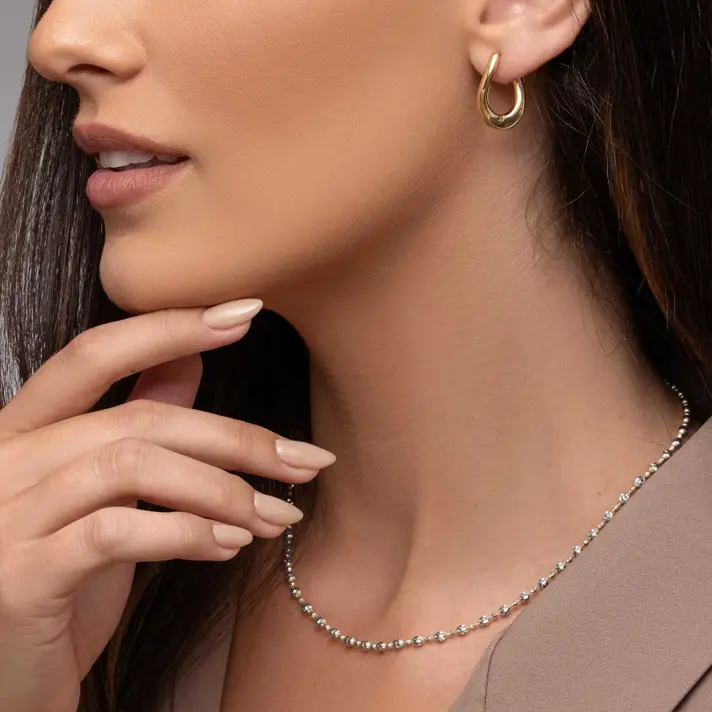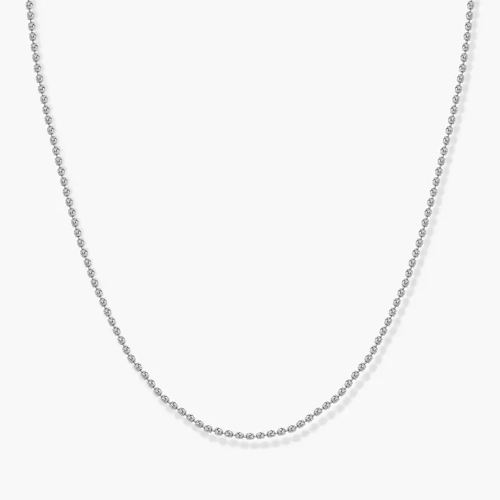 שרשרת לייזה, עשויה זהב 14K לבן במראה כדורי לייזר לנצנוץ מקסימלי. אורך השרשרת 43 ס"מ.