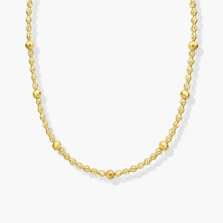 שרשרת זהב נמתחת מונקו, עשויה זהב 14K צהוב במראה סרוג ובשילוב 3 חרוזי זהב, מקולקציית ה- GOLDEN GLOW החדשה השומרת על קווים קלאסיים ובעיצוב עכשווי.  אורך השרשרת 45 ס"מ עם אפשרות להארכה ב 4 ס"מ נוספים.