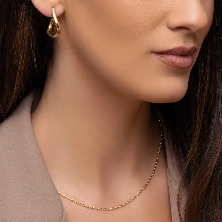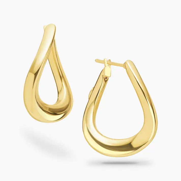 עגילי חישוק רוקסן מקולקציית DAY AND NIGHT - תכשיטים על זמניים שתמיד באופנה, גם לערב, גם ליום-יום. כל יום. כל היום! העגילים במראה א- סימטרי, עשוים 14K זהב צהוב, גובה העגילים 2.5 ס"מ