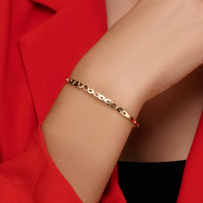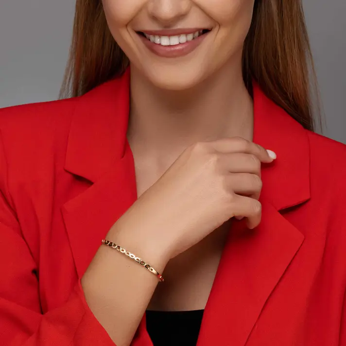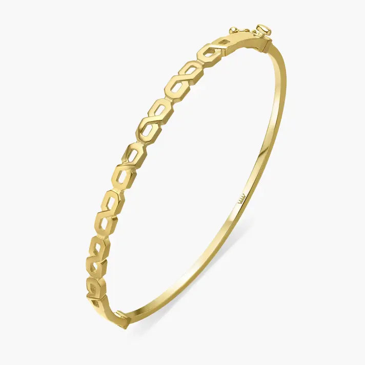 צמיד קשיח הלן עשוי זהב 14K צהוב בעל חוליות, גודל הצמיד 6*5 ס"מ.