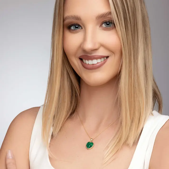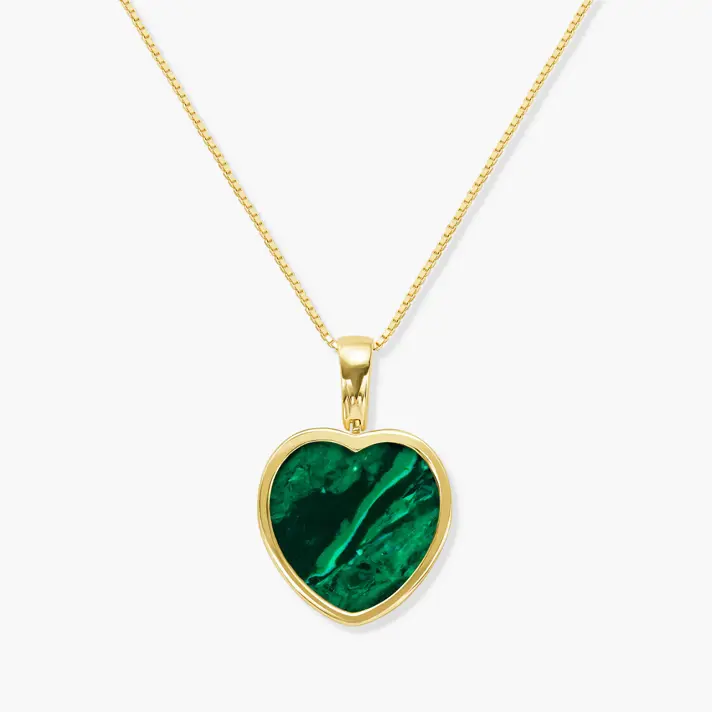 תליון זהב 14K בצורת לב משובץ באבן מלכיט ירוקה ומהממת! מידות התליון 1.5*2.3 ס"מ כולל הלולאה.