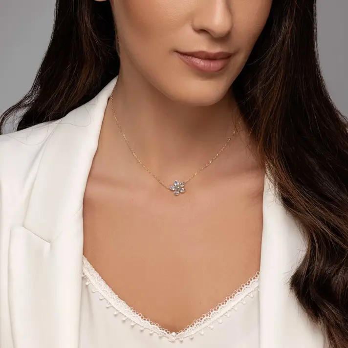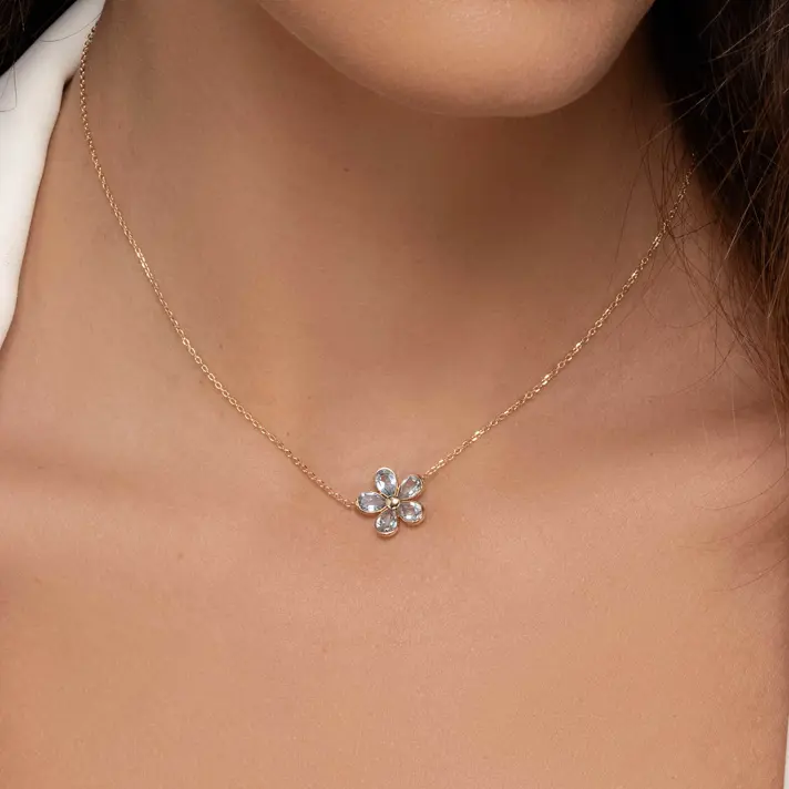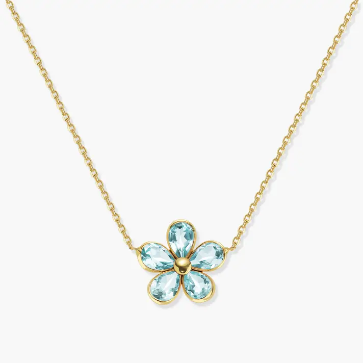 שרשרת כלנית- עם תליון פרח בשיבוץ בלו טופז