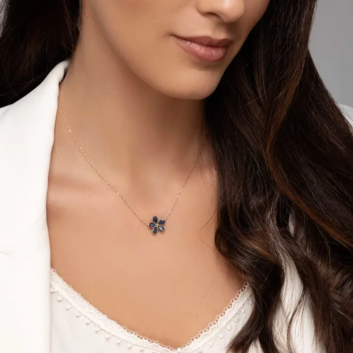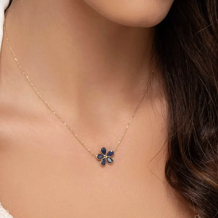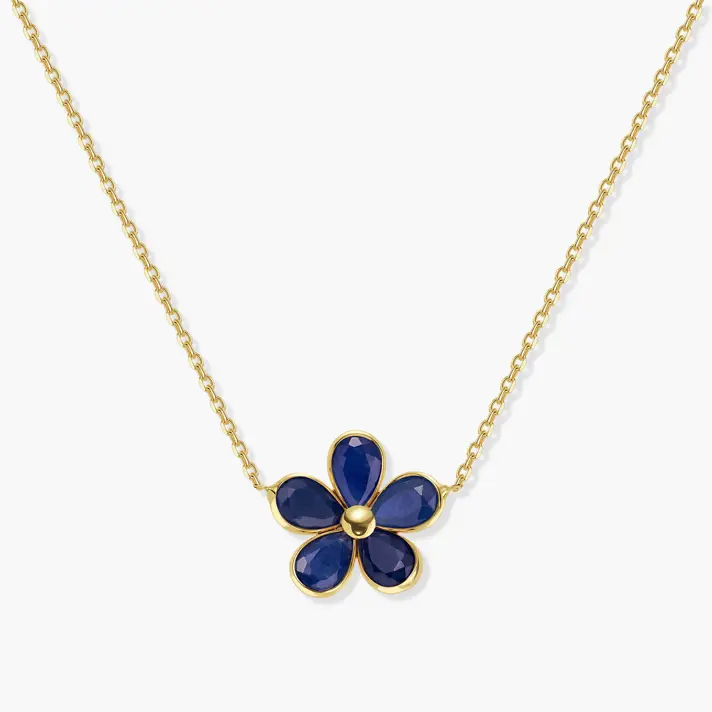 שרשרת איריס, עשויה זהב 14K מקולקציית BLOOM שכולה פריחה ולבלוב.לשרשרת תליון פרח בשיבוץ בלו ספיר בקוטר 1.2 ס"מ. אורך השרשרת 43 ס"מ.