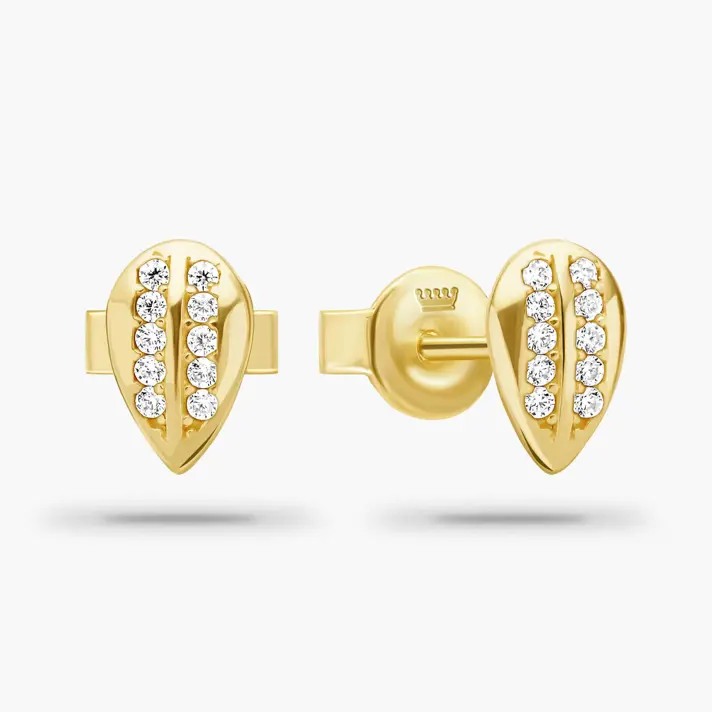 עגילי ולרי,עשויים זהב 14K צמודי אוזן, משובצים זרקונים נוצצים. מידות העגילים 0.8*0.4 ס"מ