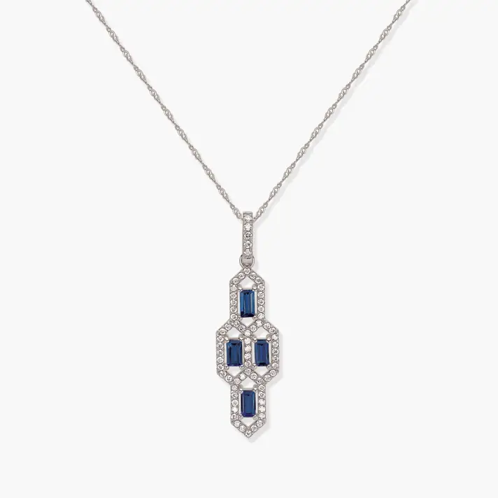תליון אשכול- עשוי זהב 14K לבן ומשובץ 67 יהלומים טבעיים ונוצצים ו4 אבני ספיר כחולות. אורך התליון 3.3 ס"מ
