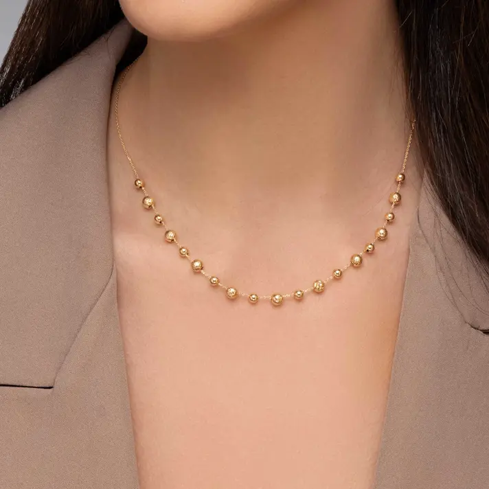 שרשרת ולנסיה זהב בשילוב כדורי זהב