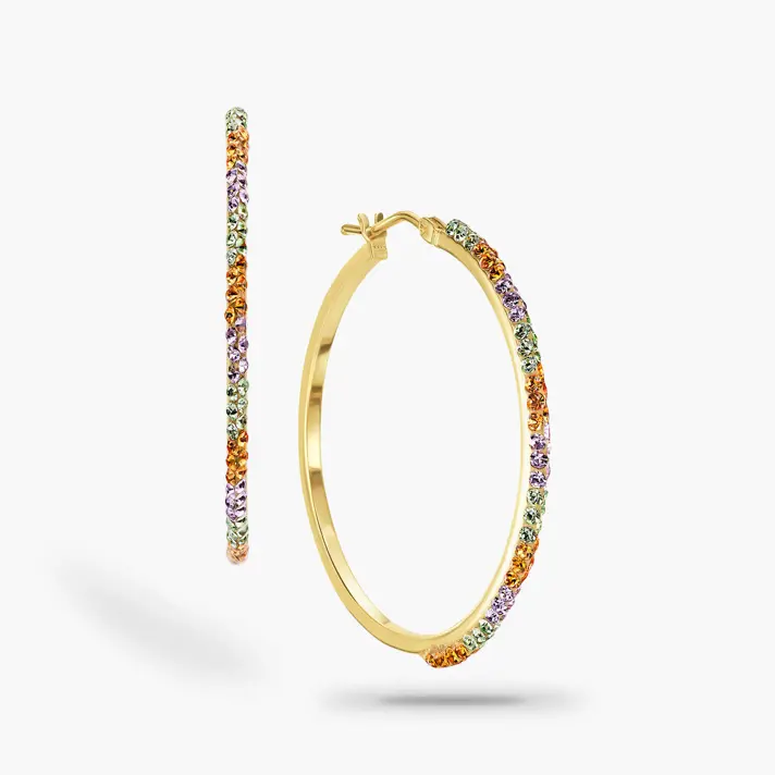 עגילי חישוק מזהב משובצים אבני סברובסקי צבעוניות