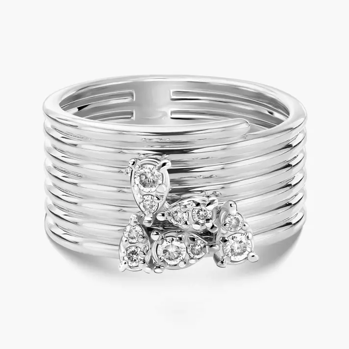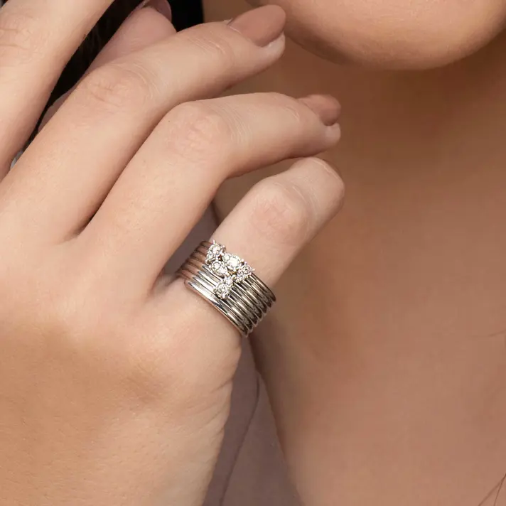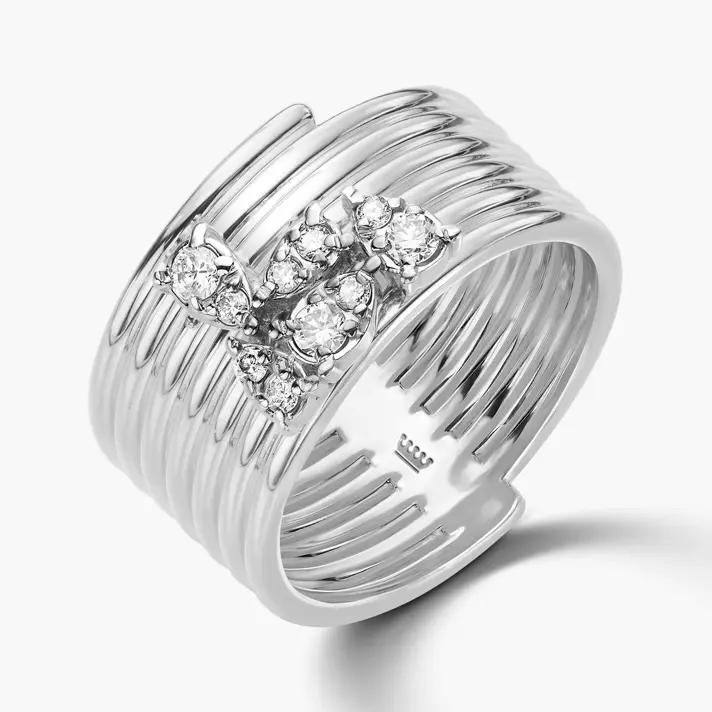 טבעת SPIN בזהבלבן ובמראה סליל ובשיבוץ 10 יהלומים טבעיים ונוצצים למראה עוצמתי שאי אפשר לפספס.