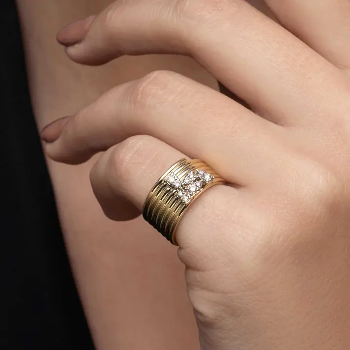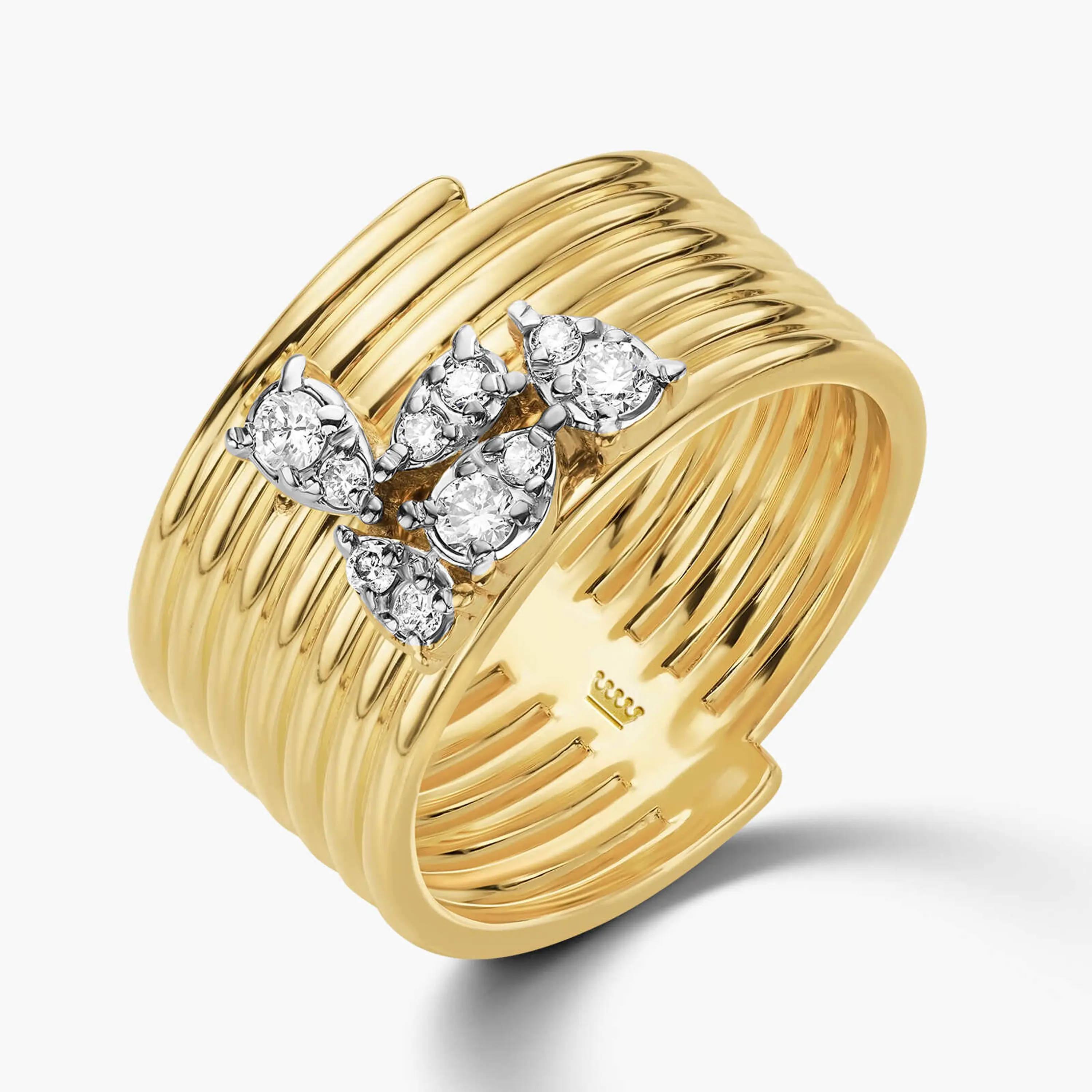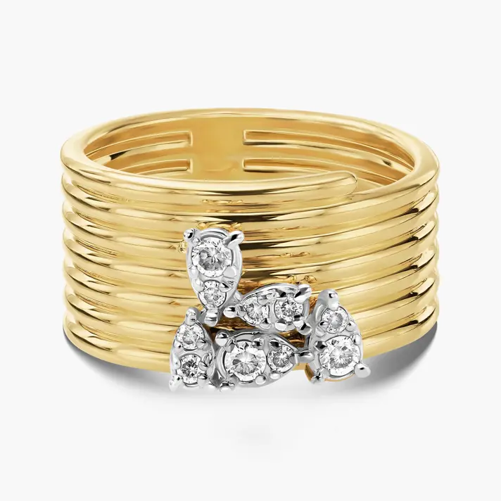 טבעת SPIN בזהב צהוב ובמראה סליל ובשיבוץ 10 יהלומים טבעיים ונוצצים למראה עוצמתי שאי אפשר לפספס