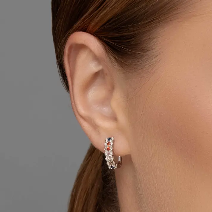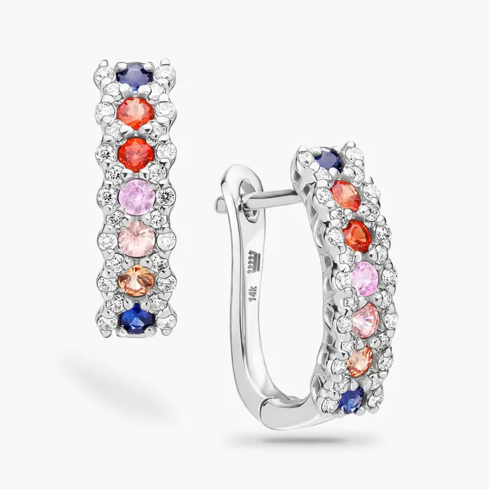 עגילי RAINBOW WHITE עשויים זהב 14K לבן ו14 ספירים צבעוניים ו 52 יהלומים טבעיים ונוצצים.