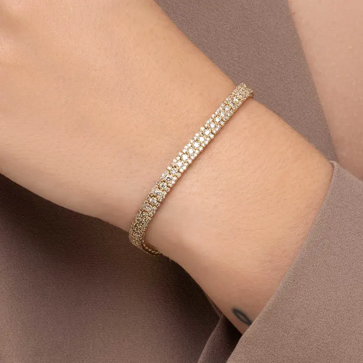 הפריט שכל אחת חייבת בתיבת התכשיטים שלה- צמיד מור, טניס יהלומים, עשוי זהב 14K צהוב, בשיבוץ 357 יהלומים טבעיים ונוצצים.
