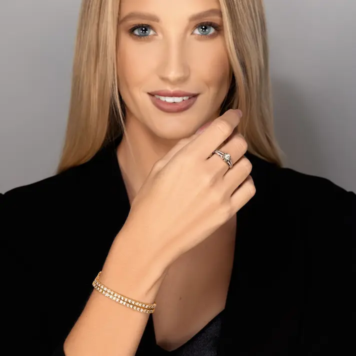 צמיד טניס יהלומים כפול- Double sparkle עשוי זהב 14K משובץ 122 יהלומים טבעיים ונוצצים למראה עוצר נשימה.