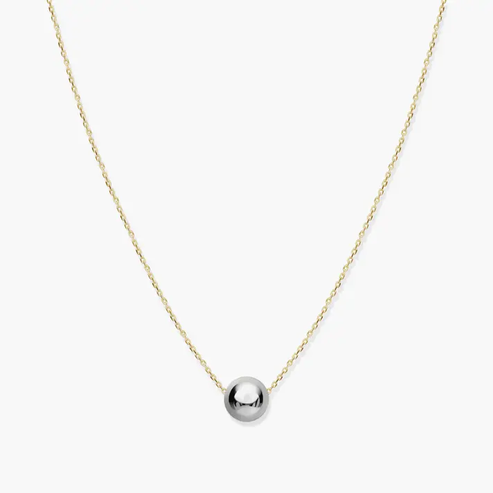 שרשרת זהב 14K ועליה כדור זהב לבן מבריק בקוטר 7 מ"מ. אורך השרשרת 42 ס"מ.