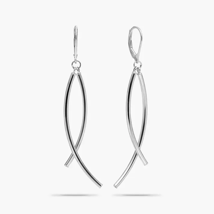 עגילי זהב 14K הבנויים משני קשתות המצטלבות אחת בשניה. אורך העגילים 7.2 ס"מ.