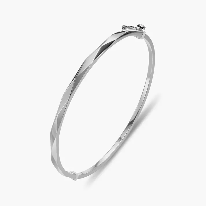 צמיד זהב קשיח 14K מהמם עם טקסטורה בחיתוך יהלום על פני הצמיד וציר המאפשר פתיחה נוחה של הצמיד. מידות הצמיד 5.8*4.9 וברוחב 0.3 ס"מ.