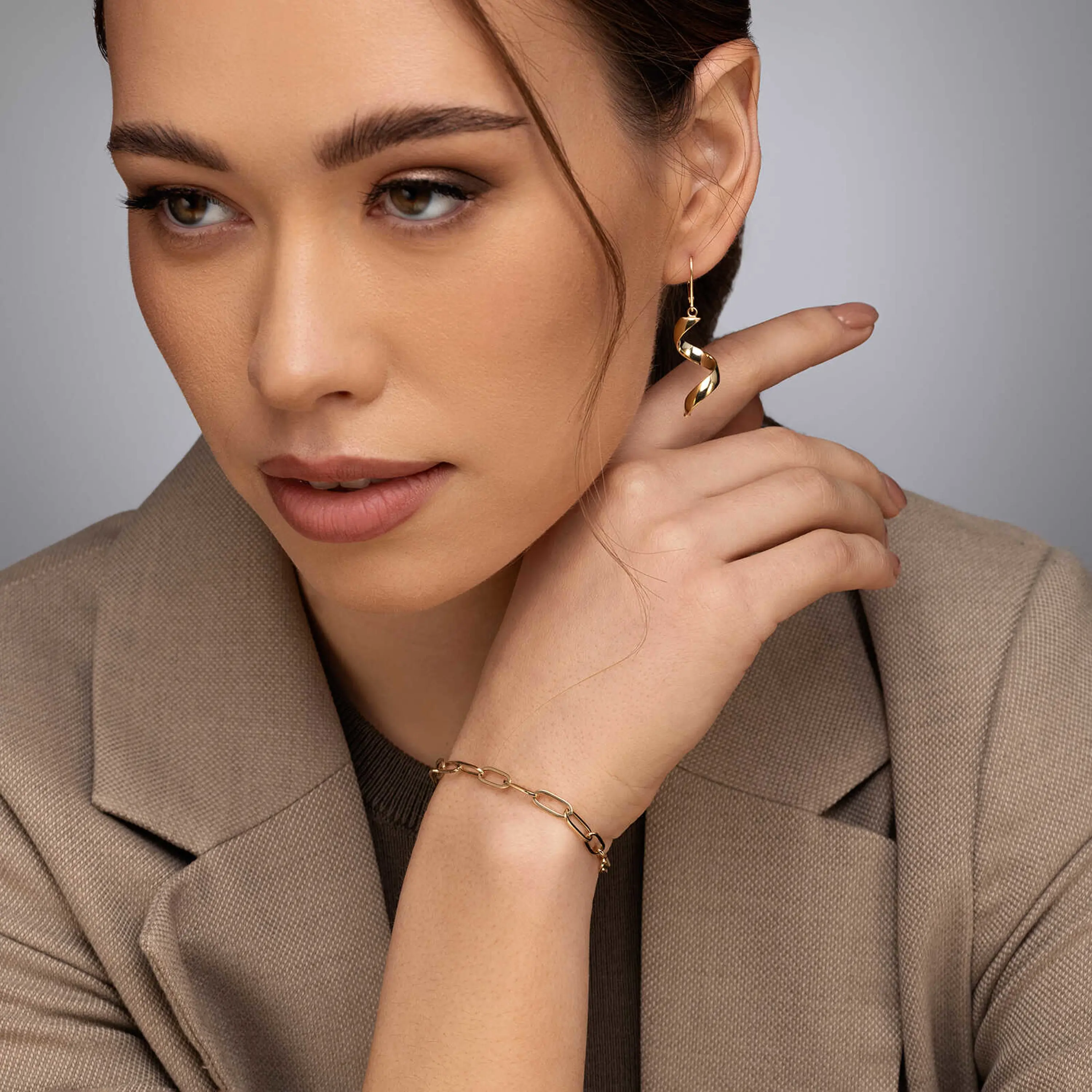 צמיד ברוקלין מחוליות זהב 14K. אורך הצמיד 18.5 ס"מ . מידות החוליות 1.3*0.6 ס"מ.