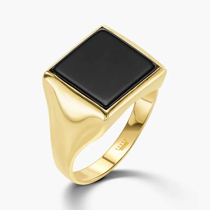 טבעת זהב מסדרת Black עם אבן אוניקס מרובעת