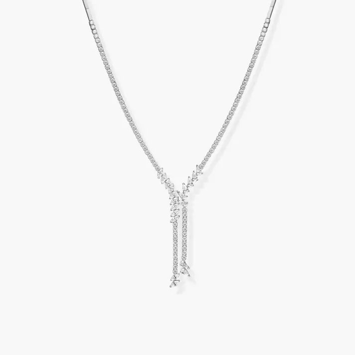 שרשרת זהב משובצת זרקונים מקולקציית ה DREAM COLLECTION, קולקציית שרשראות הערב שהן חלום של כל אחת!. השרשרת עשויה זהב 14K כעניבה ומשובצת זרקונים נוצצים למראה נוצץ במיוחד. אורך השרשרת 43 ס"מ + 3.5 ס"מ נוספים של העניבה.