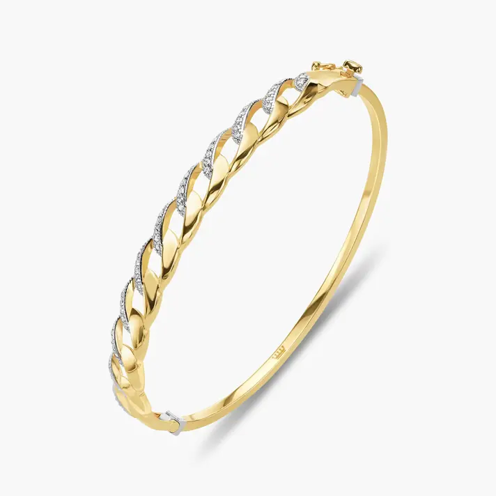 צמיד זהב קשיח עם חוליות בשיבוץ זירקונים