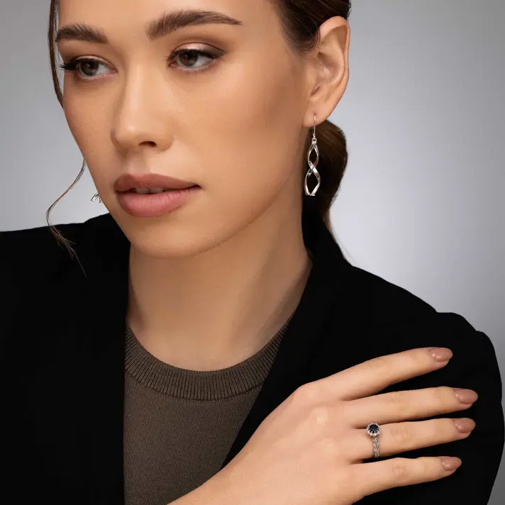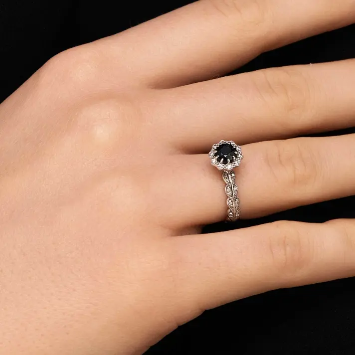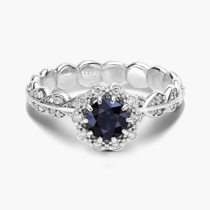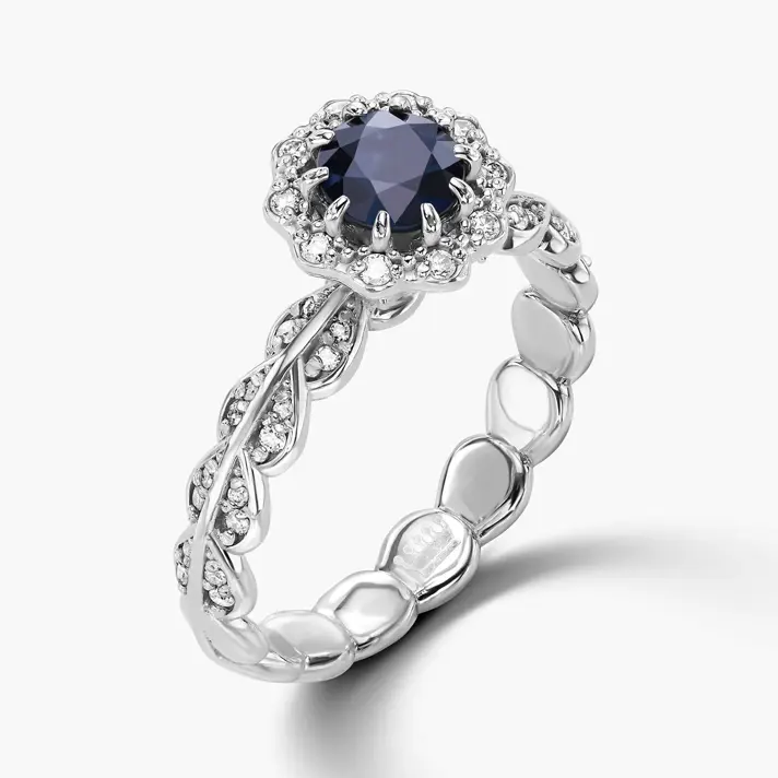 טבעת זהב משובצת אבן ספיר ויהלומים
